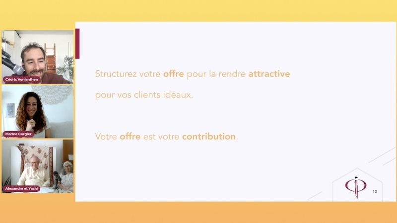 J'ai vraiment apprécié recevoir des conseils personnalisés en lien avec qui je suis. Je sais maintenant très clairement comment procéder pour [...] trouver mes clients et leur proposer une offre adaptée autant à leurs besoins qu'aux miens.